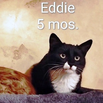 About Eddie: DSH Black Tux, 5 months old. Likable easy to handle kitten. He’s a lover. See his brother Clark (DLH Red Tab...click here for more info