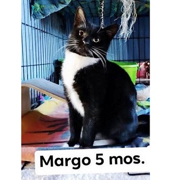 About Margo: DSH Black Tuxedo female, 5 mos old. Friendly playful kitten. See sister Molly if looking for a pair. Or her ...click here for more info