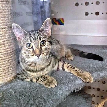 About Toffee: DSH brown Tabby female. Pretty kitten. Does your current family pet need a new friend? Having a cat friend ...click here for more info