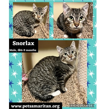 About Snorlax: DSH brown tabby male, about 5-6 months old. A little shy, but very sweet. Recent shelter rescue. He is a fri...click here for more info