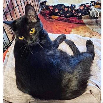 About Magic: DSH Black male, 6 months, a shy but sweet kitten. He responds to petting and attention, and will need more t...click here for more info