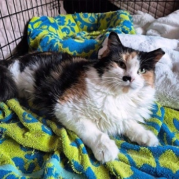 is a beautiful DLH Calico. Estimated around 5 yrs old. Cholula was taken in with her kittens a few months back, found homeless...her kittens were all placed, and now she needs a new home. She was very shy in the beginning…and will need lots of love and patience in her new home. She responds well to attention and petting. Dogs unknown at this time. Other cats who accept her with proper introduction. But she would be perfectly fine by herself as the only cat. Spayed, current on vaccinations, FIV/FeLv blood tested, and micro chipped. $95 adoption fee.