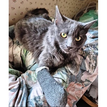 young 9 month old DMH Russian blue color female. A very social, attentive kitty. Loves everyone. Other cats seem to be ok, dogs unknown. Pricilla (aka Princess) was brought to the shelter with an injured foot. Efforts are being made to keep the foot in a splint in hopes it may heal correctly. Chances are she may have to have the leg amputated. Pricilla will need a strictly indoor home to be safe, Cats with 3 legs adapt very well to live happy normal lives. Spayed, current on vaccines, FIV/FeLv blood tested, and micro-chipped. $100 adoption fee. |