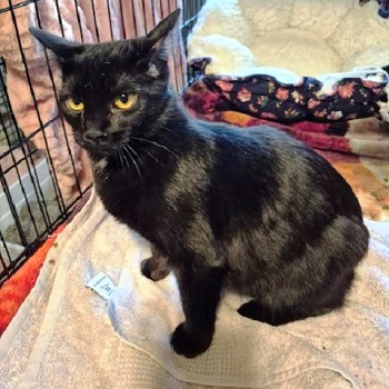DSH Black. 8-9 months old young Female. Friendly, and playful. She is a little spicy little cat. Very active. She may be best as the only kitty in the home…previous owners gave her up because their cat did not get along with her. $95 adoption fee. Spayed, current on vaccinations, dewormed, and micro-chipped, Mother FIV/FeLv Blood tested.